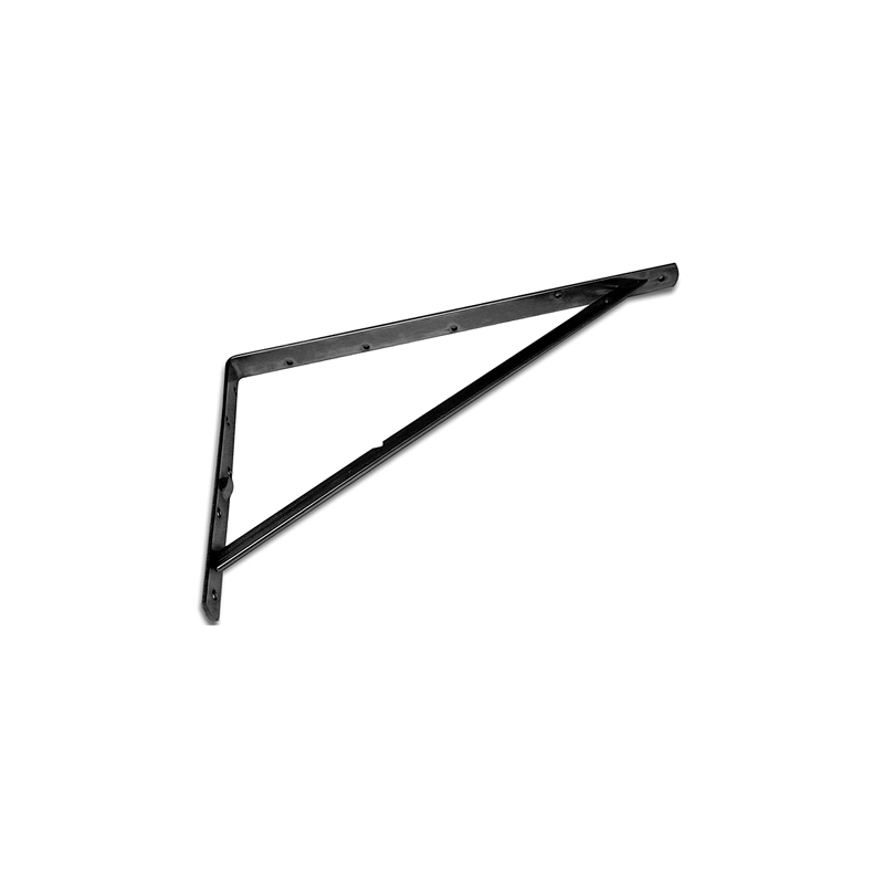 Mensola in acciaio verniciato nero. Modello brevettato con predisposizione sul traverso di rinforzo per inserire un secondo ripiano. Modello = lunghezza cm