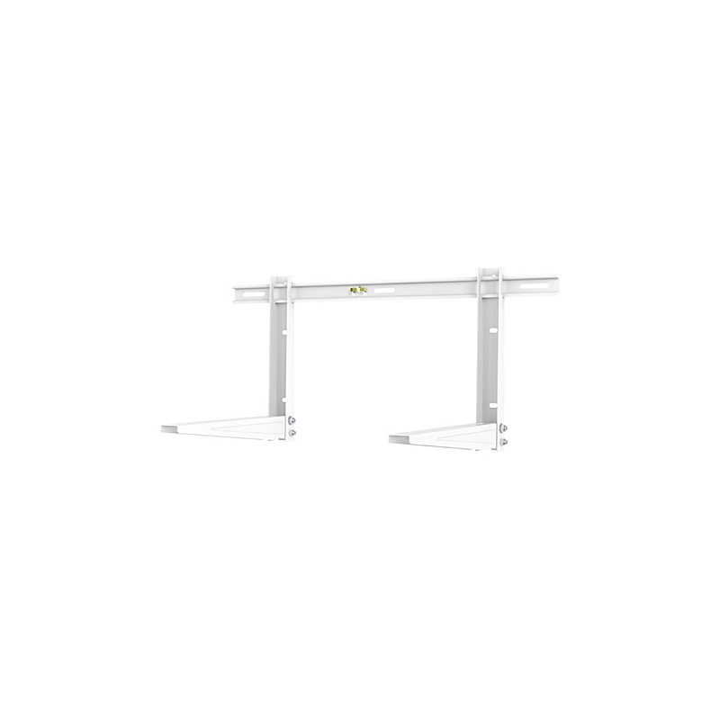 Supporto in acciaio per climatizzatore composto da 1 barra orizzontale completa di livella per la messa in bolla e 2 staffe regolabili. Capacita' di carico 140 kg. Lunghezza totale 775 mm. Profondita' mensola 400 mm. Regolazione interasse da mm 200 a 700.