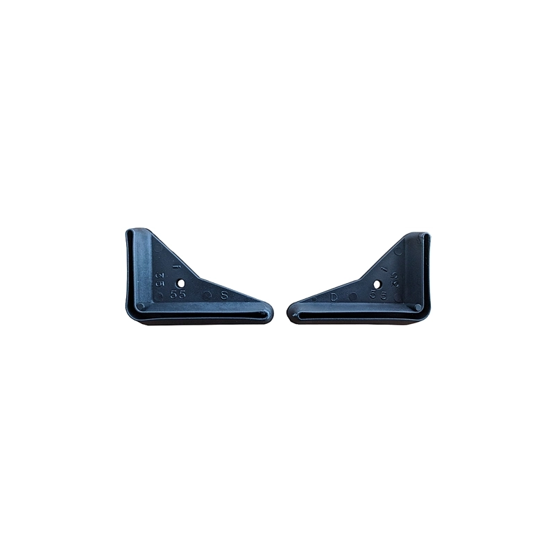 Piedini in plastica, dimensione 35x55 mm. Colore nero. Forniti in confezione da 12 pezzi dx + 12 pezzi sx.