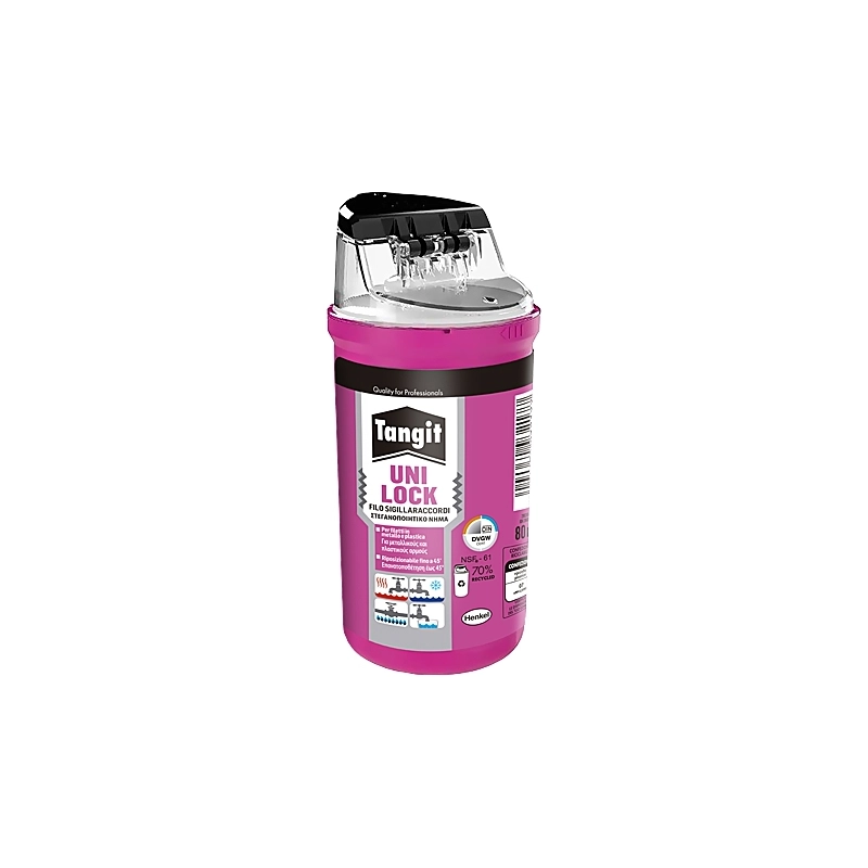 Sigillante multifilo pre-ricoperto con pasta inerte, ideale per sigillare tutti i tipi di raccordi filettati, sia in plastica che metallo: PVC, PE, PP, acciaio inox, rame, ghisa con diametri fino a 4". Applicazione 50% piu' rapida rispetto a canapa e pasta. Contenuto equivalente a 13 rotoli di teflon standard. Permette riposizionamenti fino a 45 gradi. Lunghezza 80 mt.