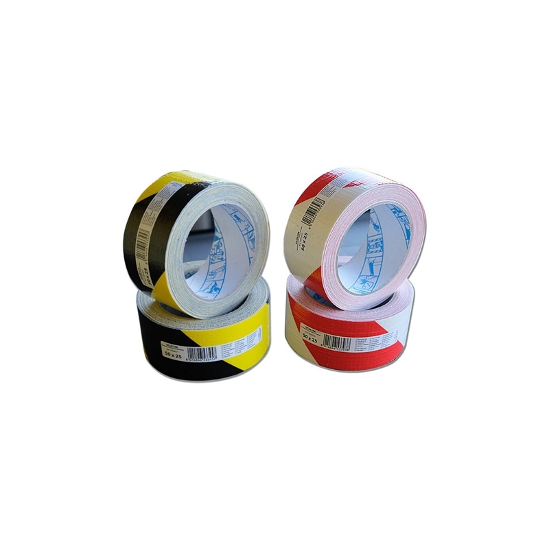 Nastro telato bicolore con rivestimento in polietilene per segnalazioni temporanee. Lunghezza 25 mt, larghezza 50 mm. Modello = colore