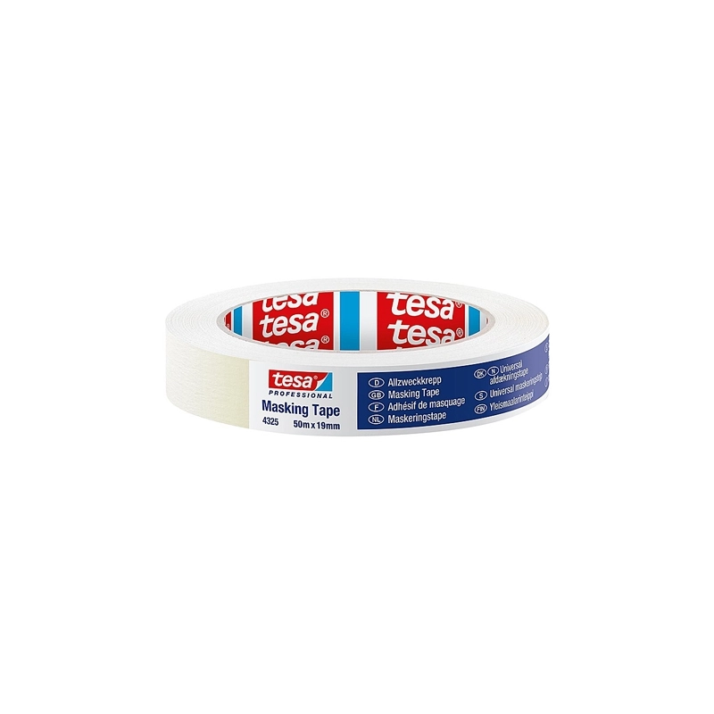Nastro in carta leggermente crespata e massa adesiva in gomma naturale. Resistente all'umidita', adatto per mascheratura universale. Spessore totale 120 micron. Adesivita' 2,6 N/cm. Allungamento alla rottura 10,0 %. Lunghezza 50 mt. Modello = larghezza nastro mm