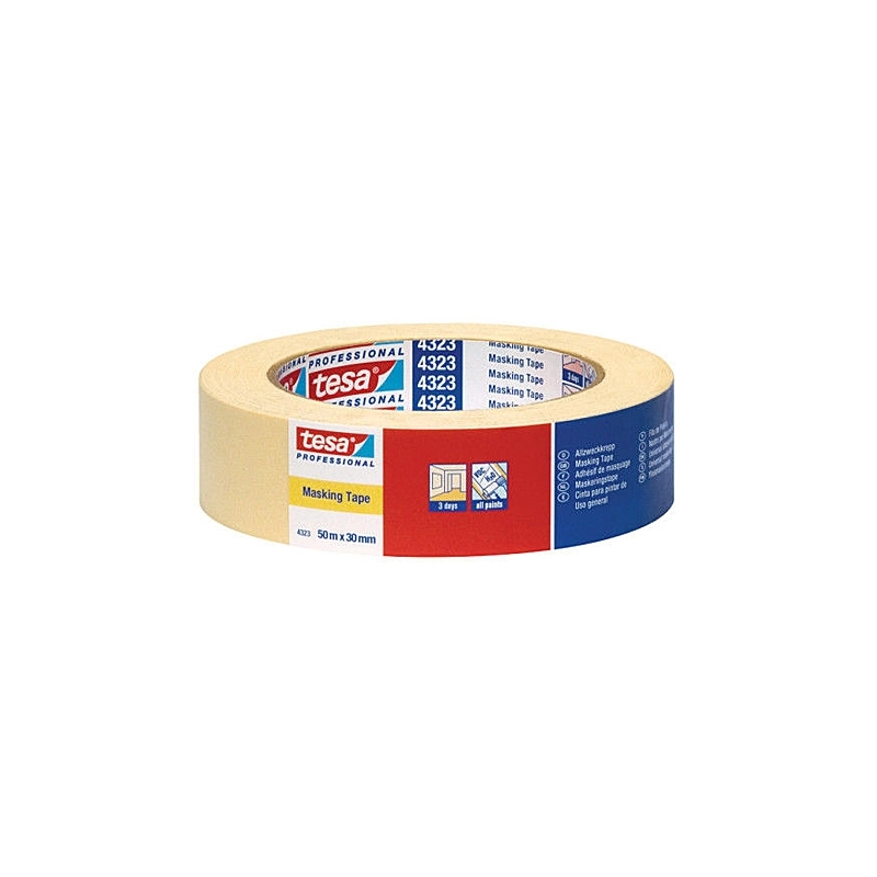 Nastro in carta semicrespata e massa adesiva in gomma naturale. Resistente all'umidita', adatto per mascheratura universale. Spessore totale 130 micron. Adesivita' 3 N/cm. Allungamento alla rottura 10,0 %. Lunghezza 50 mt. Modello = larghezza nastro mm