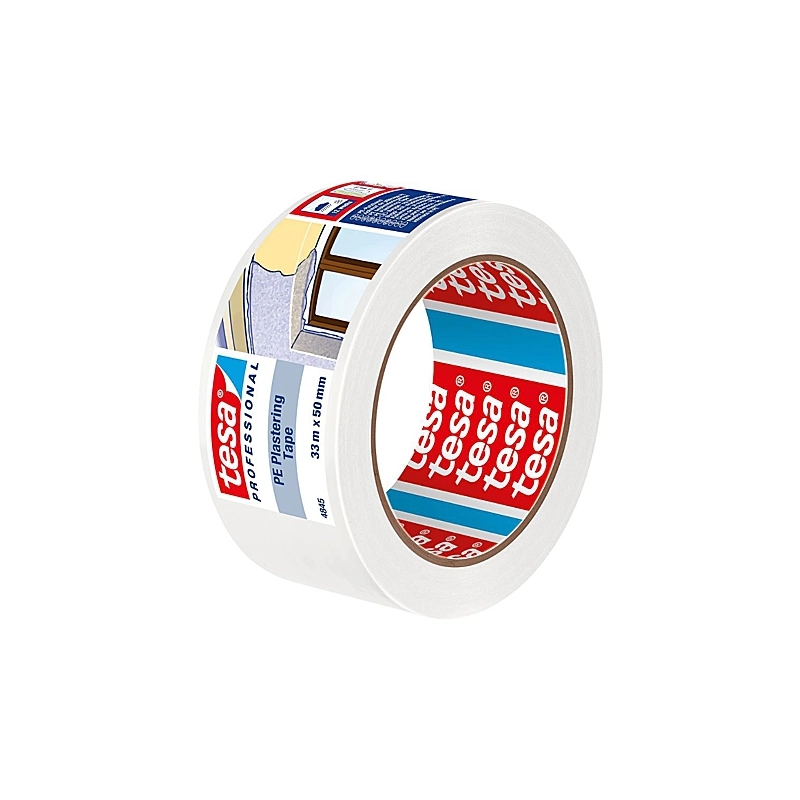 Nastro ecologico in PE per intonaco. Resistente ai raggi UV per 12 settimane. Temperatura da -40 a +60 gradi. Dimensioni mm 50x33 mt. Colore bianco.