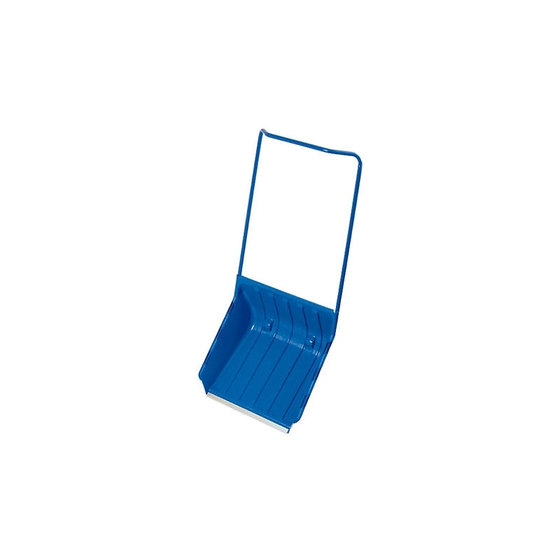 Manico in acciaio. Pala in ABS con lamina in alluminio, dimensioni mm. 680 x 720. Con ruote.