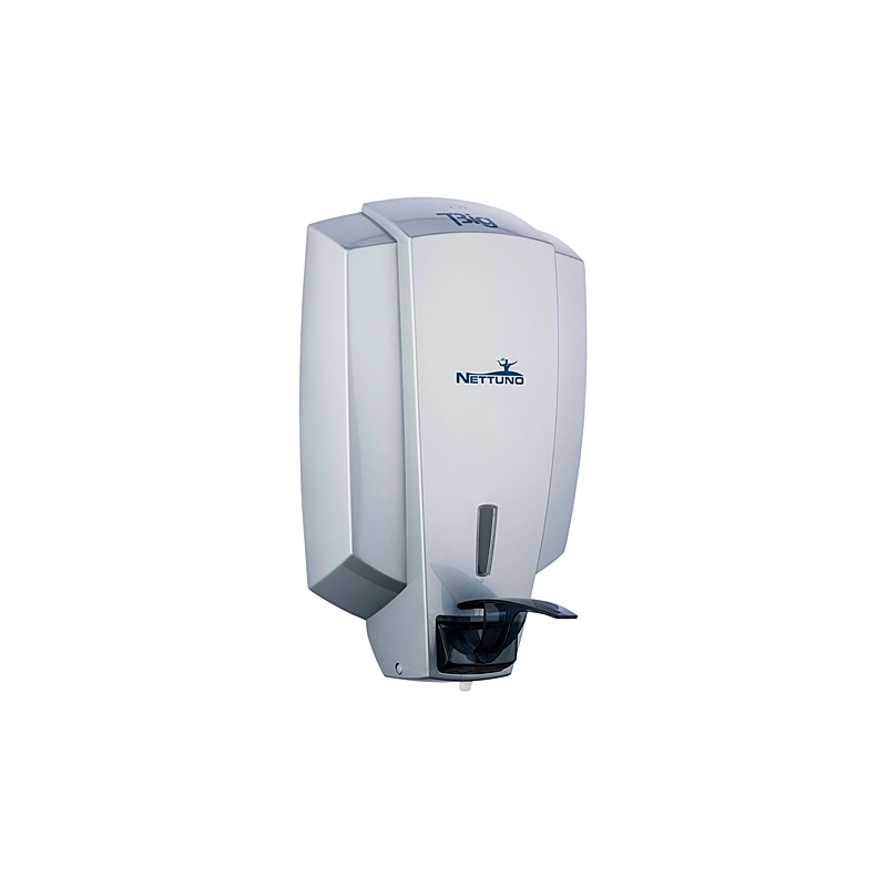 Dispenser da muro in plastica con leva a gomito. Colore grigio. Dimensioni cm.47x26x13. Funziona esclusivamente con cartucce T BAG