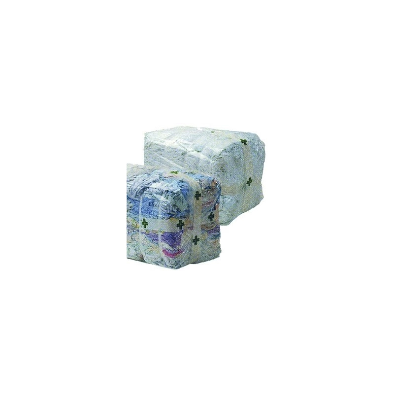 Pezzame sterilizzato in fibra di cotone colore bianco tipo lenzuoli e camici. Confezioni da circa kg 10 in scatola di cartone.