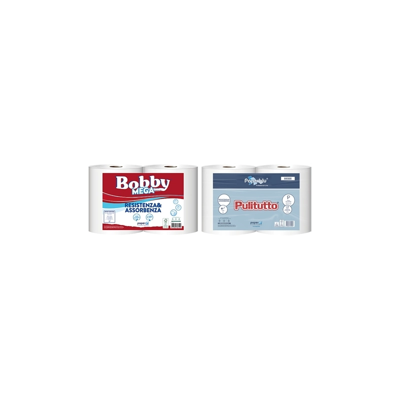 Bobine industriali in pura cellulosa 2 veli. Dati singolo rotolo 334 strappi da cm 25x22, lunghezza 73 mt. Certificata per uso alimentare. Peso per velo 21 gr/m2. Peso kg 1,7 alla coppia.