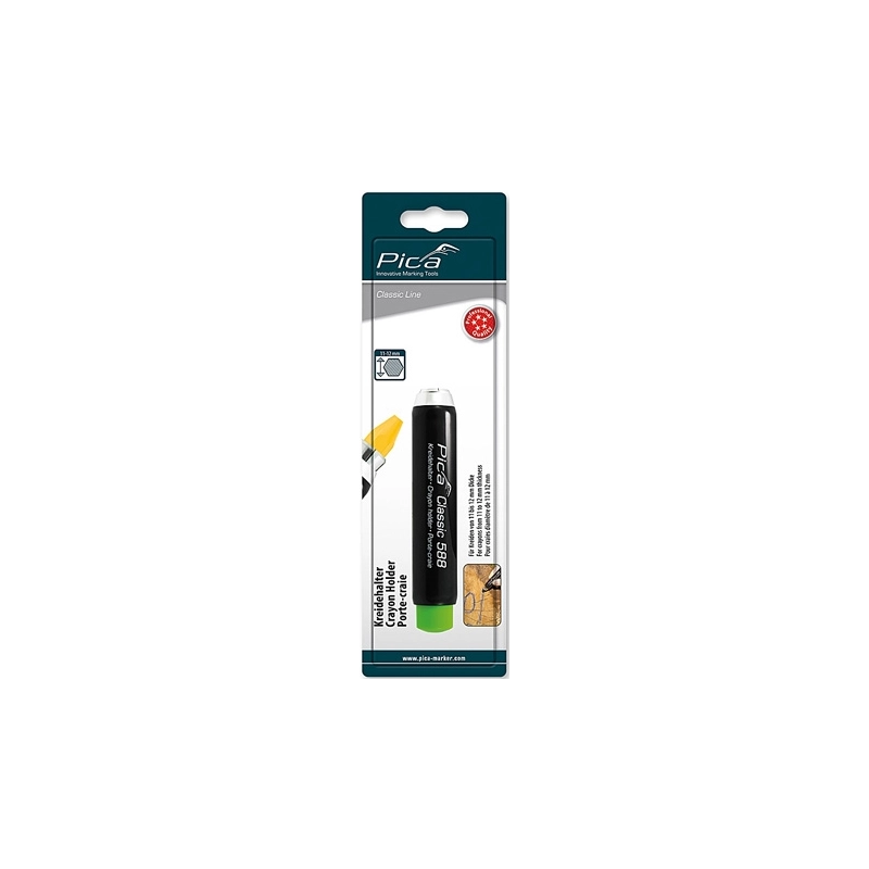 Porta pastello di alta' qualita' con meccanismo di avanzamento automatico. Consigliato per pastelli di diametro da 11 a 12 mm. Forma triangolare ergonomica, lati arrotondati. Corpo resistente in ABS. Pulsante di avanzamento colorato. Pinza in metallo.