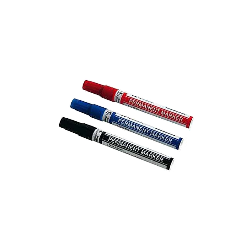 Set 3 pezzi pennarelli indelebili, per scrivere su tutti i materiali. Punta tonda. Colore nero, rosso e blu.