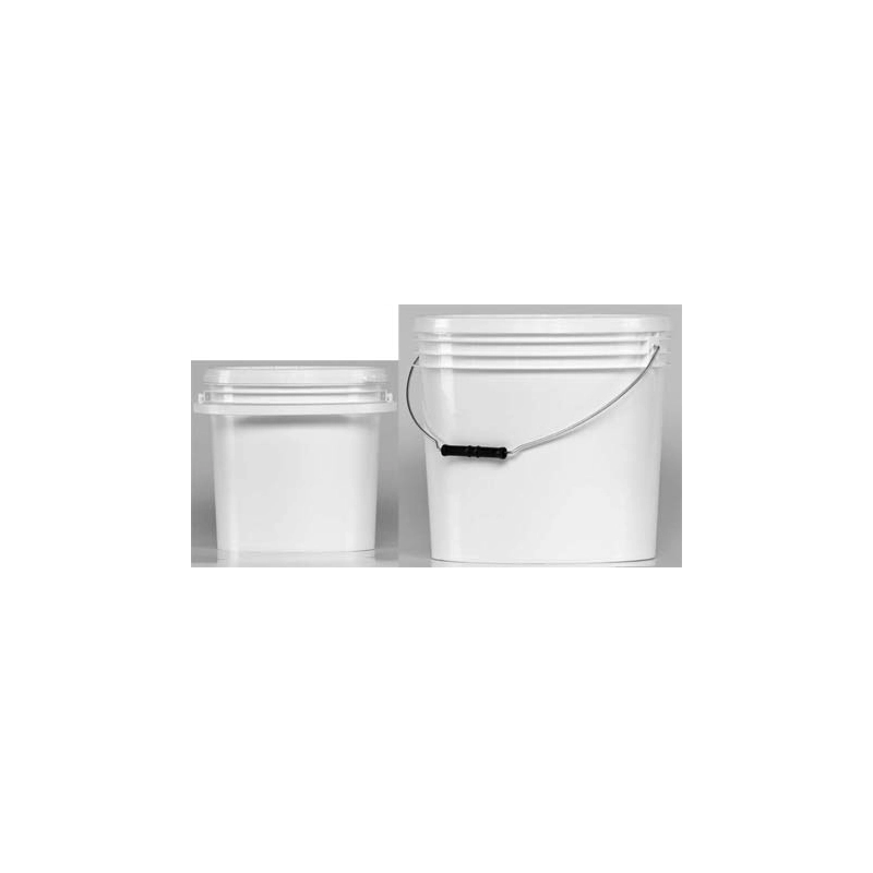 Secchio in PP con manico senza coperchio. I coperchi vanno ordinati separatamente. Adatto per uso alimentare. Colore bianco. Modello = capacita'/dimensioni cm (diametro esterno per altezza)/materiale manico