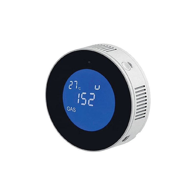 Rilevatore per gas/metano/GPL. Display che rileva in tempo reale la quantita' di gas presente nell'ambiente, dotato di segnale acustico in caso di rilevazione oltre i limiti. Funziona con APP Tuya con connessione WIFI per invio notifiche di allarme. Conforme alle direttive EN 50194-1:2009 e EN 50194-2:2019. Alimentazione con cavo USB (incluso).