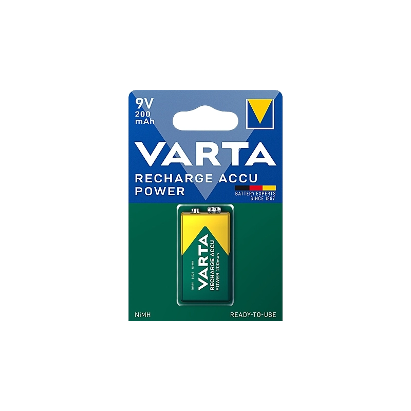 Blister 1 pz. batterie transistor - POWER ACCUS 9V 200 mAh - 9V Tecnologia "Ready To Use", gia' completamente cariche e pronte all'uso. Adatte per ogni tipo di caricatore.