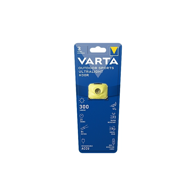 Torcia da testa estremamente leggera. Testa orientabile. Funzione dimmer per regolare l'intensita' luminosa. Resistente all'acqua IPX4 e agli urti. Cinturino regolabile e lavabile. Ricaricabile tramite cavetto micro Usb da 1 mt incluso. Fascio luminoso fino a 91 mt. 300 Lumen.