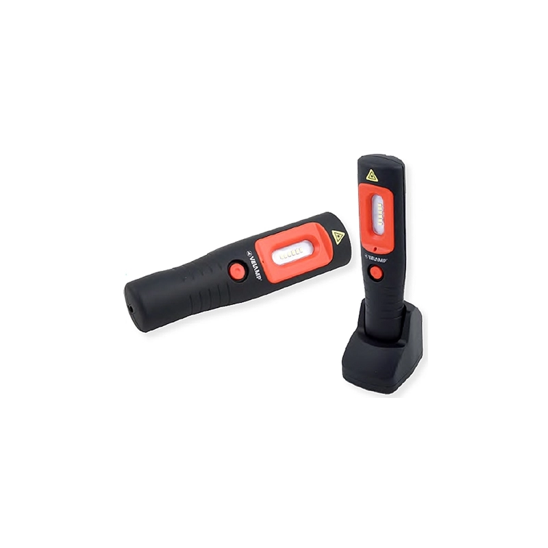 Lampada con tecnologia SMD LED ricaricabile in ABS. 3W. 300 lumen. Luce diffusa. Autonomia 4 ore 100% e 8 ore al 50%. Dotata di gancio posteriore magnetico. Durata 30000 ore. Dimensioni 58x40x240 mm.