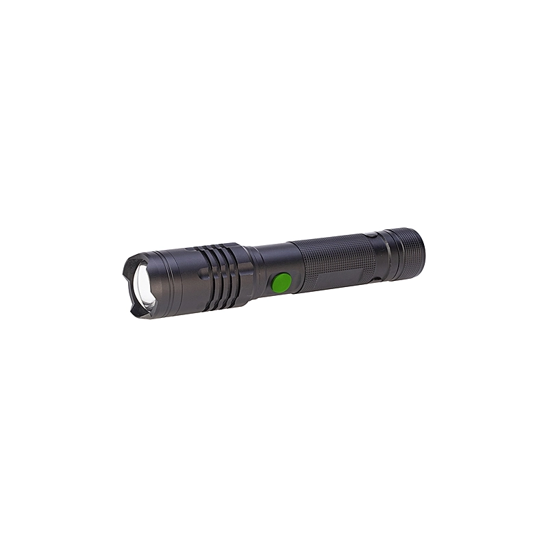 Torcia ricaricabile in alluminio a Led 10 Watt. Fascio di luce regolabile. 1000 Lumen. Con 2 regolazioni (alta luminosita' - bassa luminosita'). IPX4. Distanza massima 200 mt. Funziona con 1 batteria al litio da 3,7V. Funzione powerbank compresa USB.