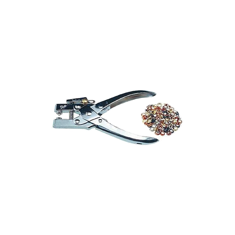 Pinza in acciaio per occhioli diametro interno 4 mm. In scatola comprendente 100 pezzi occhioli.