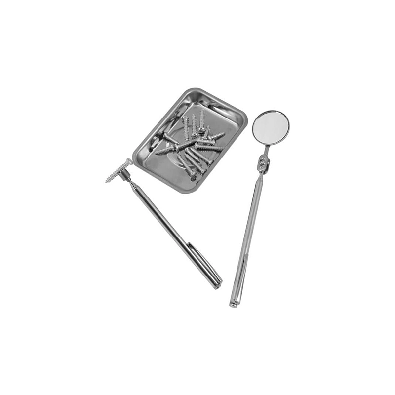 Kit composto da 3 pezzi: 1 vassoio magnetico, 1 raccogli oggetti magnetico e 1 specchio per ispezioni.