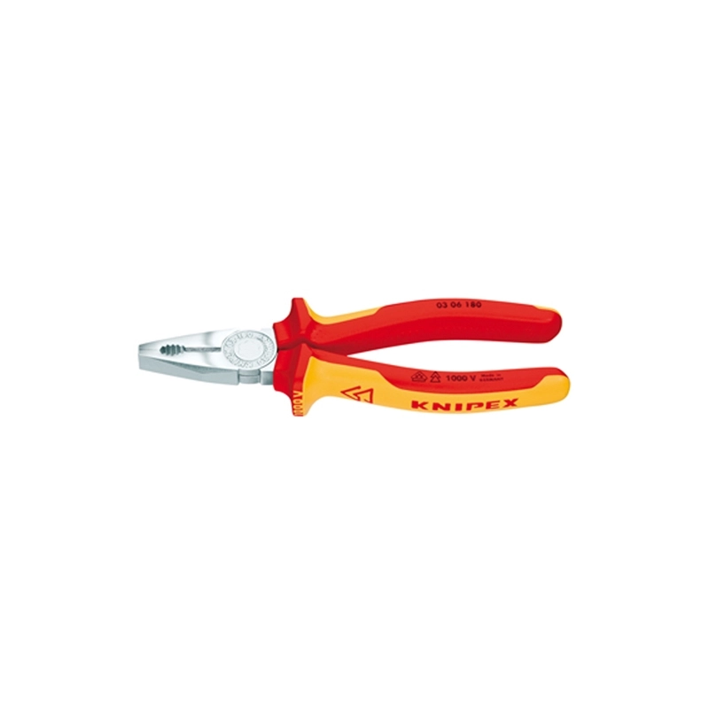 Pinza ad alto isolamento, in acciaio speciale, forgiato, temperato ad olio. Taglienti temperati ad induzione, durezza 60 HRC. Manici isolati rivestiti in materiali multicomponenti, collaudati VDE. Modello = lunghezza mm.