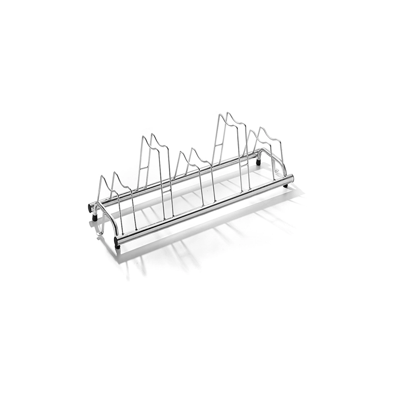 Portabici in acciaio zincato colore argento, tappi in pvc nero. Posti alternati con larghezza differenziata mm 60 e 80. Sistema di posteggio biciclette alto e basso in modo da non fare incastrare i manubri tra di loro. Adatto per sistemare anche le bici con freno a disco. Modello = numero posti/dimensioni cm