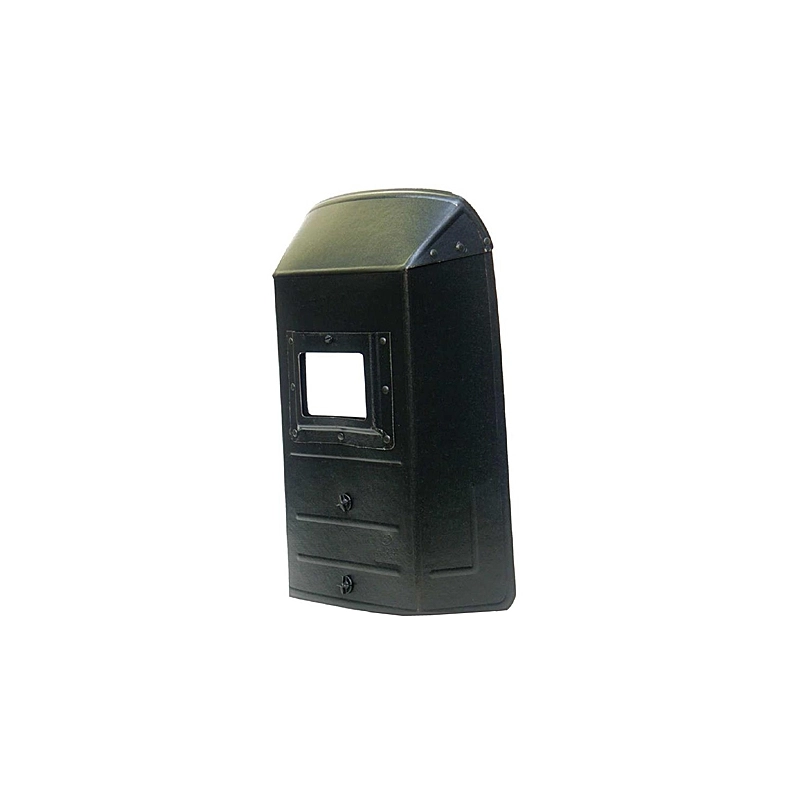 Schermo piano in fibra con finestrella esterna, viene fornito con impugnatura smontata. Peso 240 g. Dimensioni schermo 75x98 mm. Dimensioni totali 255x378x75 mm.