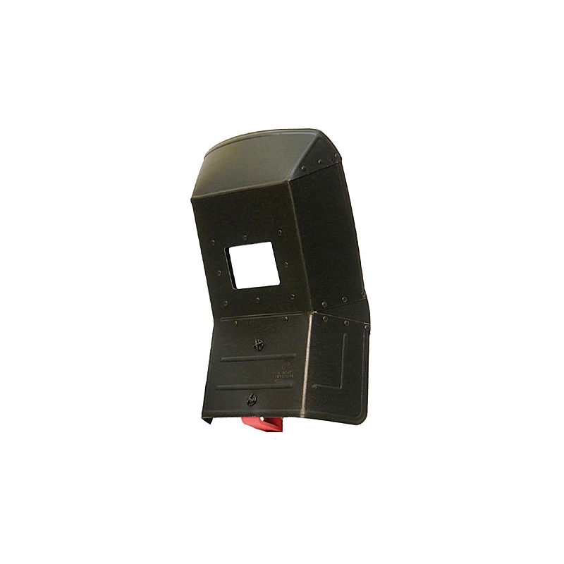 Schermo in fibra curvo con aggiunta di rinforzo e con finestrella interna. L'impugnatura viene fornita montata con aggancio al rinforzo rendendo lo schermo molto solido. Peso 290 g. Dimensioni schermo 75x98 mm. Dimensioni totali 260x390x81 mm.