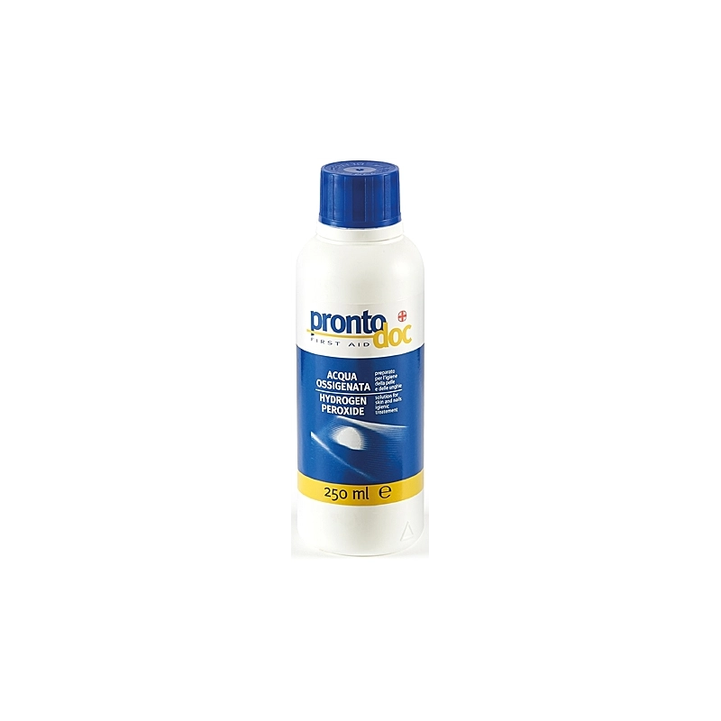 Flacone acqua ossigenata a 12 vol. per uso esterno. Contenuto 250 ml.