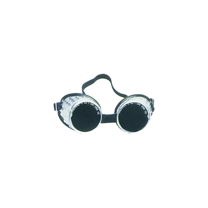 Occhiali a coppe in alluminio. Lenti sostituibili con chiusura in alluminio. Disponibili lenti CROCK di ricambio. Modello = tipo lente (CROCK = lente incolore in policarbonato carborock - DIN 5 = lente verde in vetro inattinico DIN 5)
