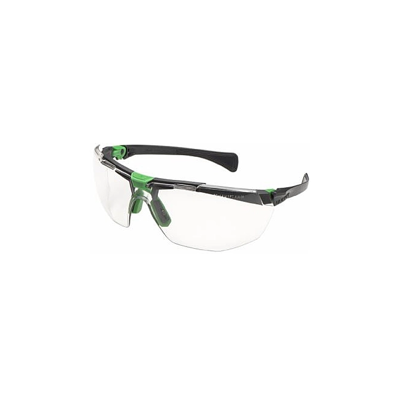 Occhiale con astine ad inclinazione regolabile. Astine ultrasottili per uso combinato con cuffie antirumore. Nasello brevettato regolabile in altezza. Lenti trasparenti in policarbonato con trattamento antigraffio e antiappannante. EN166. EN170.