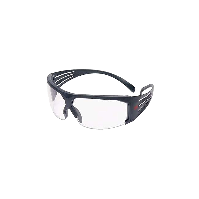 In policarbonato, lenti trasparenti antiappannamento Scotchgard. Montatura grigia con design avvolgente. Morbido nasello per un comfort maggiore.