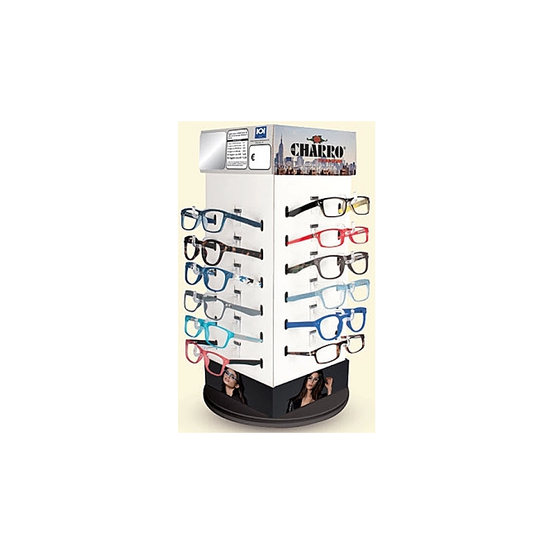 Kit da 24 occhiali El Charro composto da 1 modello in 4 colori, con assortimento delle diottrie (dalla 1,00 alla 3,50). Espositore da banco in omaggio da richiedere separatamente al nostro agente. Modello = mod.occhiali