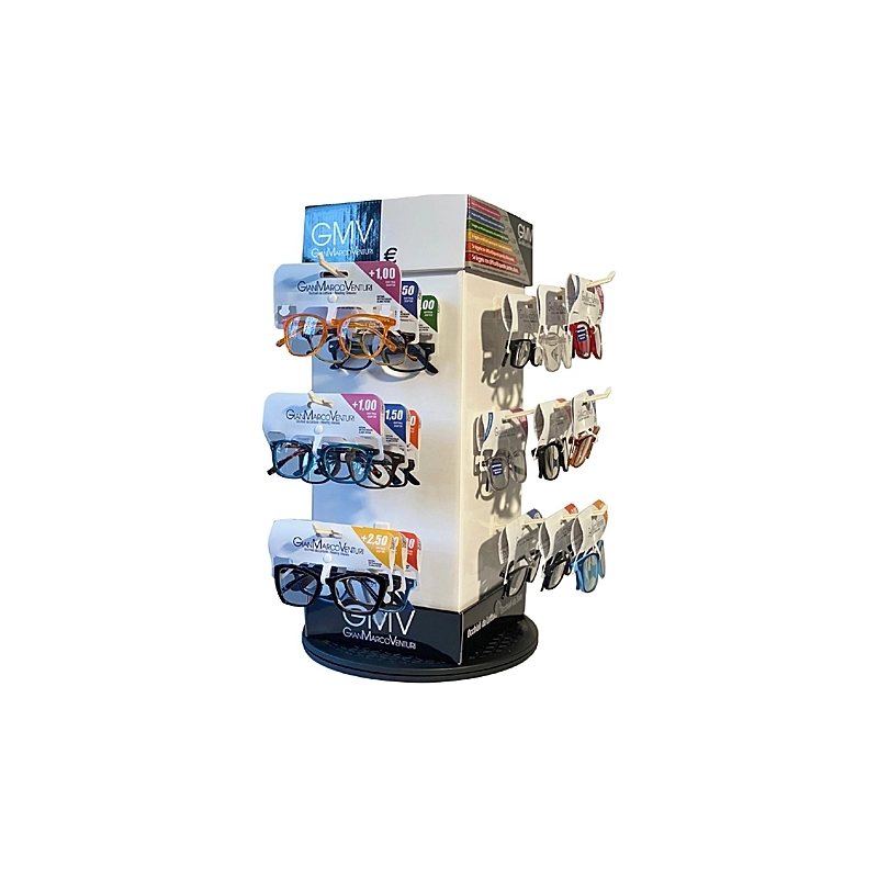 Kit da 24 occhiali Gian Marco Venturi composto da 1 modello in 4 colori, con assortimento delle diottrie (dalla 1,00 alla 3,50). Espositore da banco in omaggio da richiedere separatamente al nostro agente. Modello = mod.occhiali