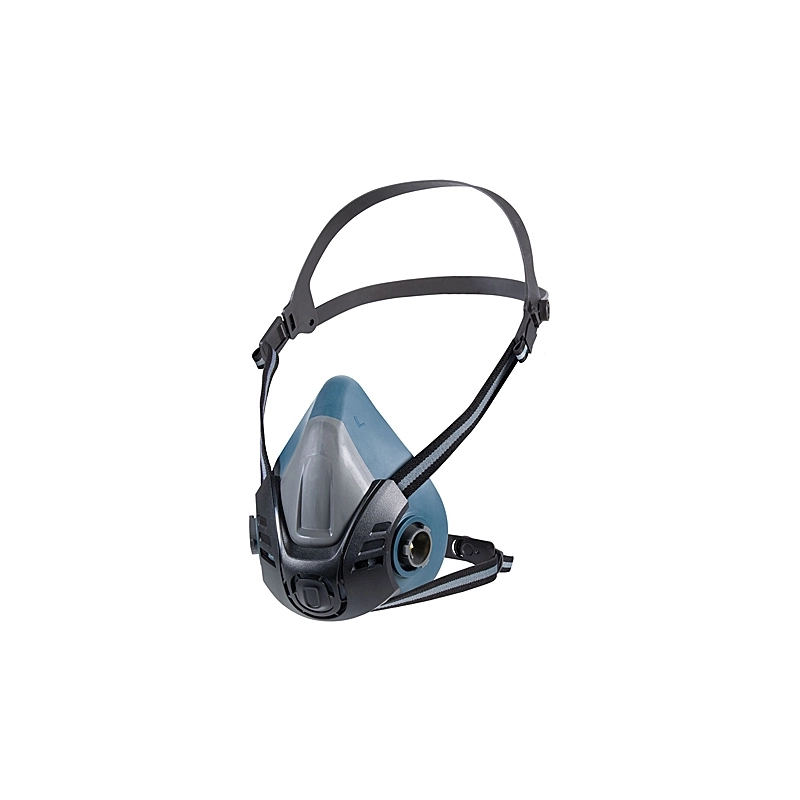 Semimaschera filtrante antigas bi-filtro con raccordi a baionetta per un aggancio sicuro. Semifacciale in TPE ipoallergico. Con valvola centrale protetta. EN140:1998. Peso 93 gr.