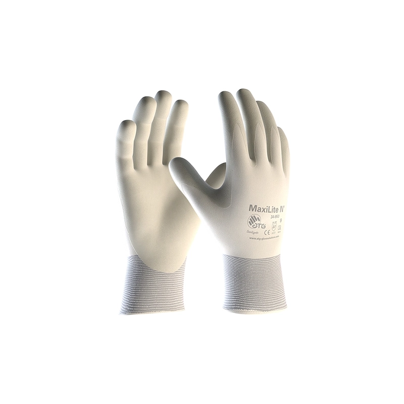 Guanti in filo continuo di nylon, ricoperti in nitrile. Polso elasticizzato. Trattamento antibatterico actifresh, dorso areato. EN 388:2016-4121X. Modello = taglia