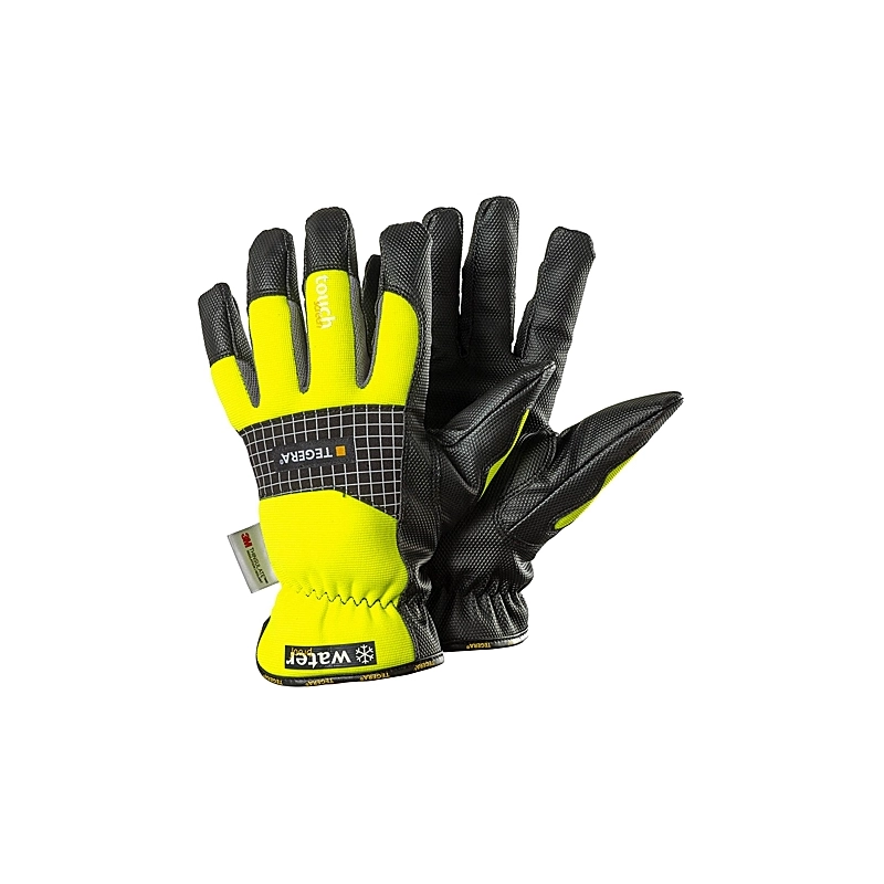 Guanti in pelle sintetica con rivestimento in pile e Thinsulate. Palmo con grip Diamond. Impermeabile. Colore ad alta visibilita'. Elasticizzato. Lunghezza 240-275 mm. EN388:2016-1121X. EN420:2003+A1:2009. EN511:2006-111. Modello = taglia