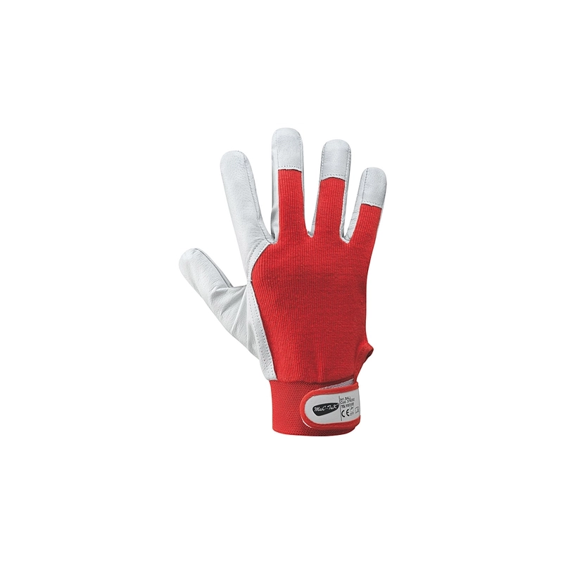 Palmo in fiore ovina. Dorso in maglia di cotone elasticizzato. Polso elasticizzato regolabile con velcro. Colore del palmo bianco e dorso variabile a in base alla taglia. Modello = taglia