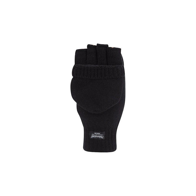 Guanti in acrilico e poliestere con copertura delle dita ripiegata sul dorso. Isolamento 3M Thinsulate. Colore nero (6pz L e 6pz XL)