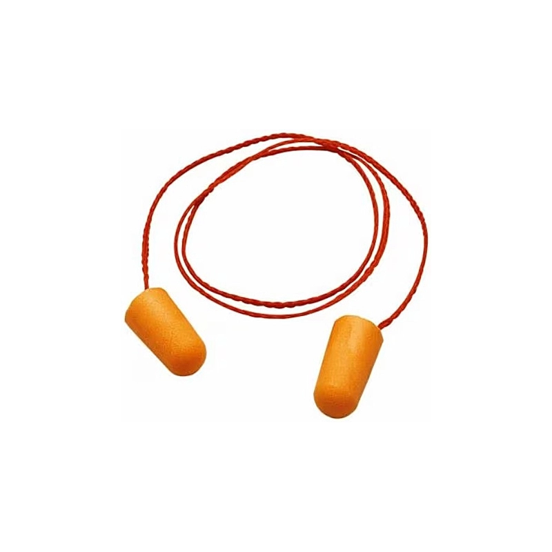 Inserti auricolari in schiuma poliuretanica ipoallergica. Attenuazione: 35 db (SNR). Con cordicella.