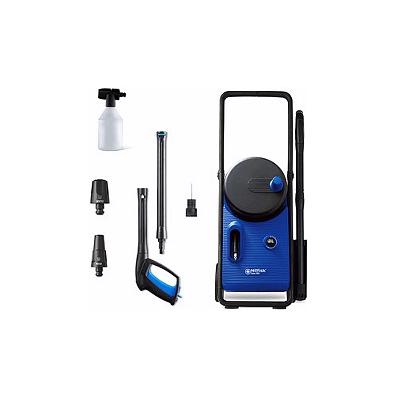 Idropulitrice ad acqua fredda, pressione max 150 Bar. Completa di tubo da 10 m con avvolgitubo. Portata (max) 468 L/h. Potenza 2000W. Pompa in alluminio. Sistema attacco rapido per il cambio degli accessori. Dimensioni 300x371x881 mm. Peso 11,2 Kg. Lunghezza cavo 5 mt.