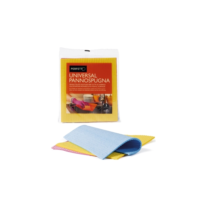 Pannospugna in cotone e cellulosa. Dimensioni 19x15 cm, spessore 0,5 cm. Confezione da 3 pezzi.