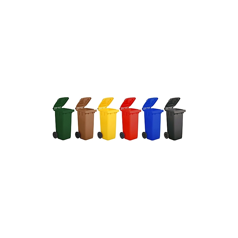 Realizzato in polietilene ad alta densita', lavabile e sterilizzabile. Volume l 120. Ruote da mm 200. Fermasacco in metallo da ordinare a parte. Modello = colore