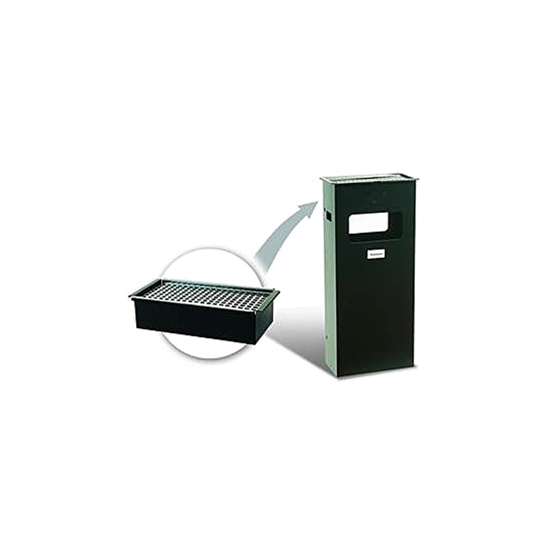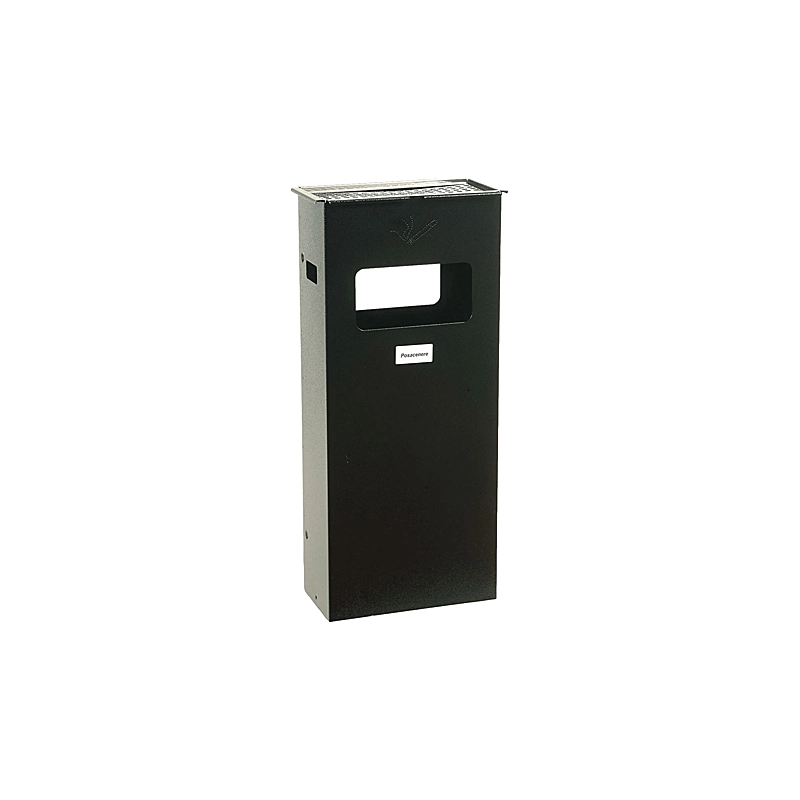Posacenere e gettacarte per esterno in lamiera verniciata a polvere epossidica. Cestello superiore estraibile. Colore grigio scuro. Dimensioni 300x150x700h. Peso kg 5,6