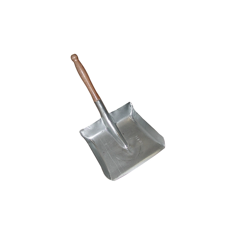 Paletta zincata con manico in legno, lunghezza totale 45 cm, dimensioni paletta 22x22 cm, peso 700 gr.
