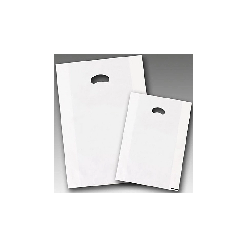 Sacchetti con manico a fagiolo riutilizzabili. Spessore 60 my. Confezione da 10 kg. Colore bianco. Modello = dimensioni cm
