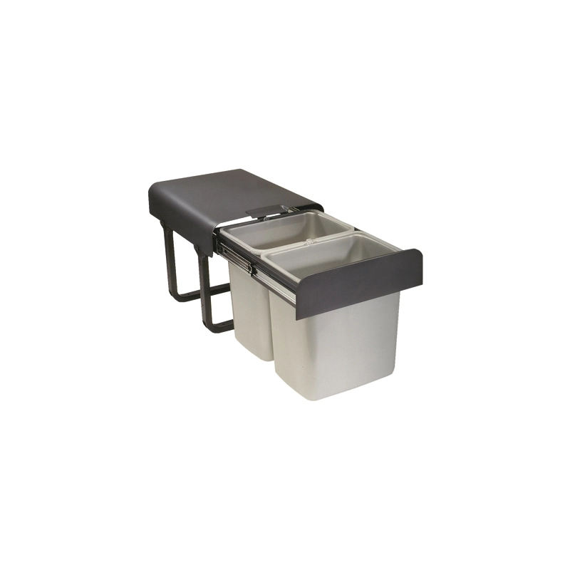 Portarifiuti sottolavello per raccolta differenziata. Guide in acciaio zincato. 3 contenitori estraibili da l 16+8+8. Dimensioni L. 355 - P. 473 min. - 910 max - H. 365