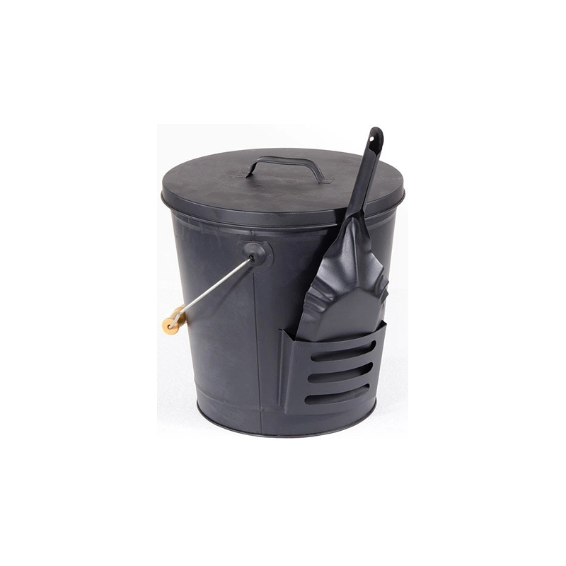 Set per la raccolta della cenere composto da secchio e paletta. Realizzati in metallo verniciato. Capacita' secchio 17 litri.
