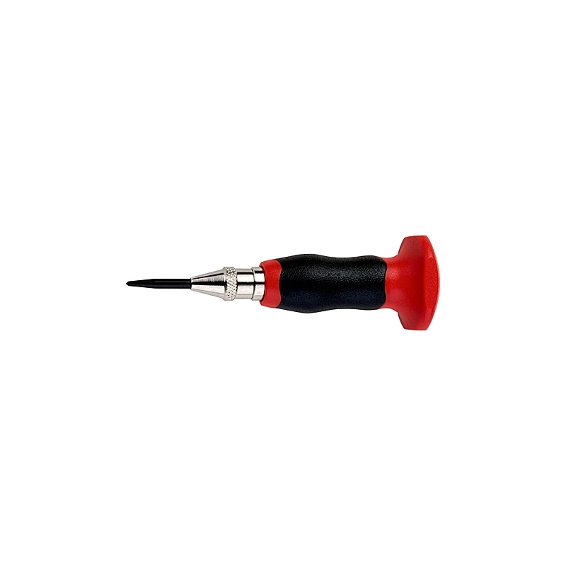 Punzone per preparare e contrassegnare con precisione un punto di foratura per evitare che la punta del trapano scappi. Attivazione automatica tramite uno speciale meccanismo a molla. Forza regolabile. Punta sostituibile e temprata. Realizzato in acciaio speciale per utensili con superficie zincata. Protezione per le mani bicomponente. Modello = diametro punta mm/Forza Nm