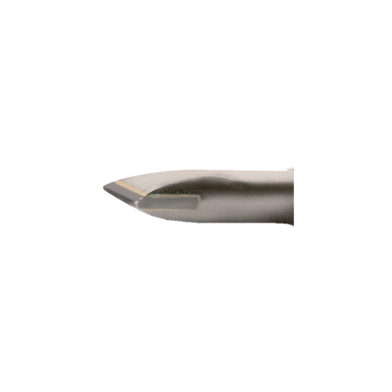 In acciaio speciale temperato con inserto in metallo duro riaffilabile da mm.15x4,5. Manico ricoperto in PVC. Modello = dimensioni mm.