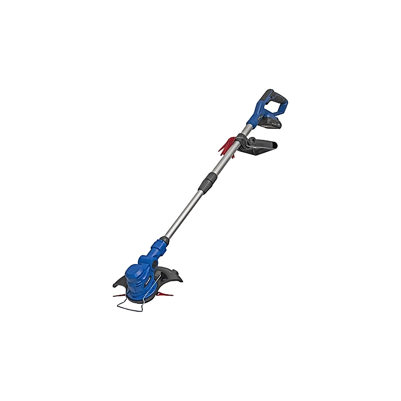 Tagliabordi con larghezza di taglio 25,5 cm. Manico telescopico allungabile cm 110-140. Rotazione testa fino a 90 gradi. Velocita' a vuoto 9000 rpm. Fornito nudo, funziona con 1 batteria da 20V da acquistare a parte. Disponibile come ricambio il kit da 20 lame.