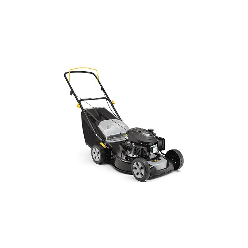 Rasaerba a spinta con motore a scoppio ST 120 OHV da 125 cc. Ampiezza di taglio mm 460, altezza di taglio centralizzata (min/max) in 6 posizioni mm 22-65. Scocca in acciaio. Cesto di raccolta da lt 60.